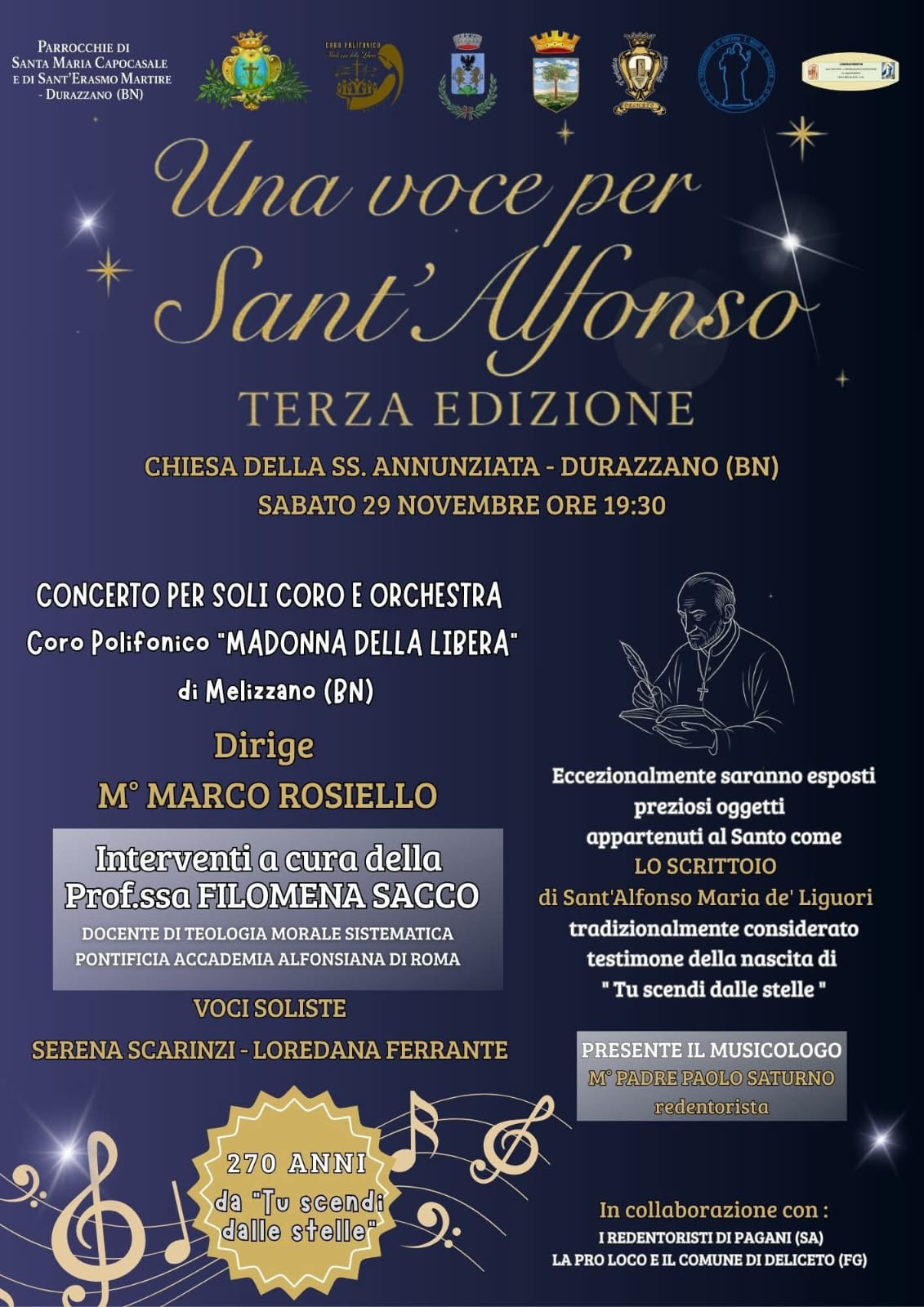 Durazzano ospiterà la terza edizione di “Una Voce per Sant’Alfonso”, sabato 29 novembre nella Chiesa della Santissima Annunziata.