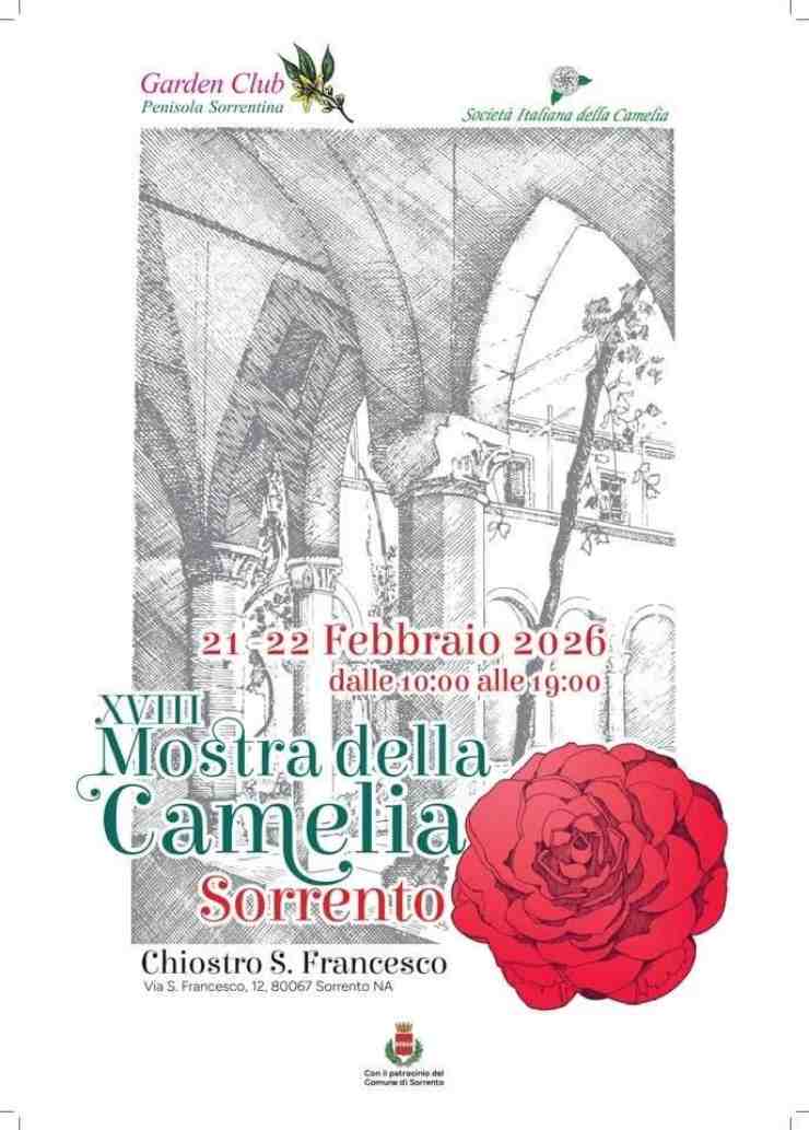La città di Sorrento riscopre il fascino della primavera con la XVIII edizione della Mostra delle Camelie, in programma sabato 21 e domenica 22 febbraio 2026 nello scenario del Chiostro di San Francesco.